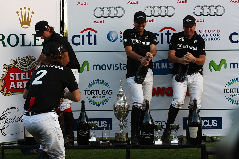 Consecutive penalties saw Facundo Pieres convert consecutive goals that knotted it up at 13-13 with time running out. Just when it looked as if the match was headed for overtime, Gonzalito Pieres took control of the ball. Teammates Heguy and Nicholas Pieres each rode off opposing players, allowing Gonzalito the shooting lane he needed. With less than five seconds left, Gonzalito drove the ball through the goalposts for the winning goal and the 2011 Tortugas Open Championship.